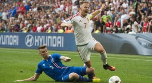 Ijesztő sérülése ellenére mesterien kilőtte a bal sarkot Dzsudzsák Balázs.