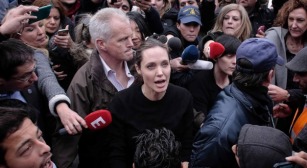 Angelina Jolie színésznő egy pireusi menekülttábort látogatott meg.
