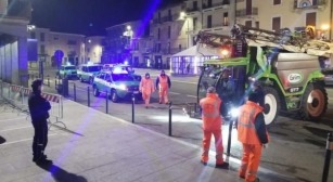 Szántóföldi permetezőgéppel fertőtlenítik az utcákat Olaszországban