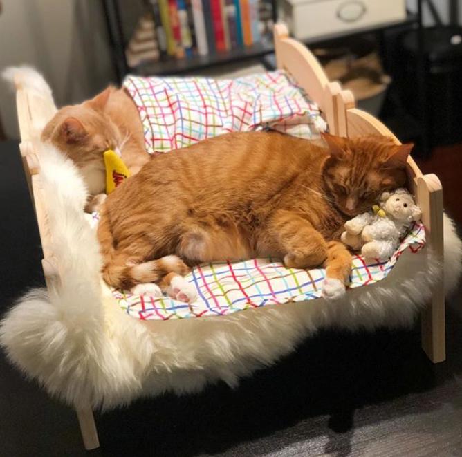 A gyerekek plüssei helyett a cicájukat altatják az IKEA miniágyaiban