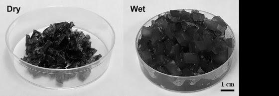 Bal oldalon száraz, jobb oldal nedves állapotban a hidrogél