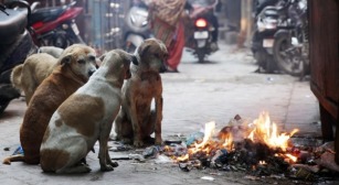 A hideg és szeles időjárás nem csak az embereket, a szegényeket teszi próbára, a kutyák is fáznak.