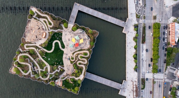 A Hudson folyón lebeg New York új szabadidős komplexuma.