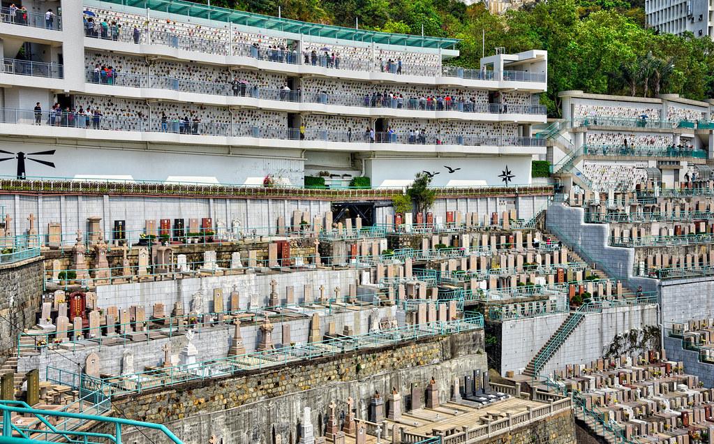 Számos országban inkább az ég felé törnek, ha elfogytak a helyek. A függőleges temetők nem mondhatók meghittnek, csendesnek, inkább lélekölő toronyházakra emlékeztetnek. Egyes ázsiai országokban már többemeletes pagodákba temetkeznek, Hong Kongban pedig a lejtős domboldalakat igyekeznek kihasználni, zsúfolt beépítésekkel. Japánban már olyan hotel is létezik, ahol a család elhelyezheti az elhunytat addig, amíg a krematóriumban helyet kapnak.
