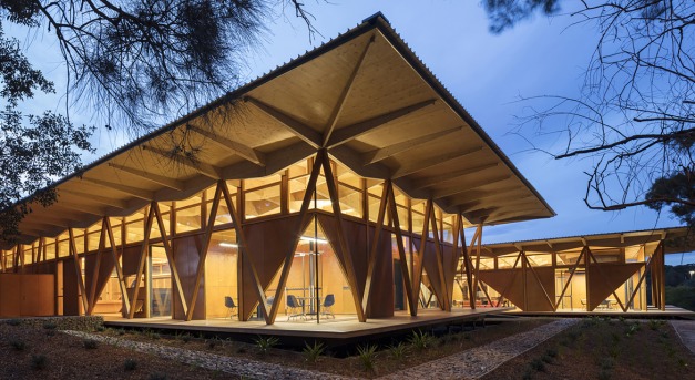 Az építészeti alapelvek, a természetes anyagok harmonikus palettája és a rácsos forma a campus építészeti környezetének meghatározó jellemzőit is tükrözi.