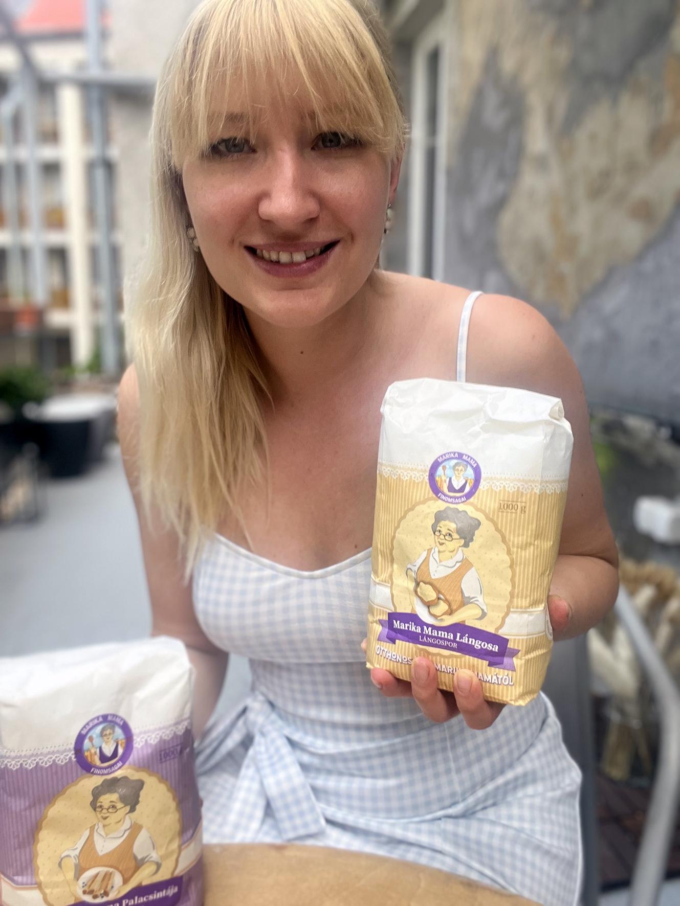 – A mai napig szeretek a tésztához nyúlni, érteni kell hozzá, és szeretni kell. A lángosnak lelke van – mondja a fiatal hölgy. – Nagymamám klasszikus, hagyományos receptje számomra a legjobb, ezért erre építettünk. Sajnos ő már nem élhette meg, de iránta való tiszteletből választottuk az elnevezést. Még a csomagoláson látható kép is hasonlít rá, és a lila szín a kedvence volt!