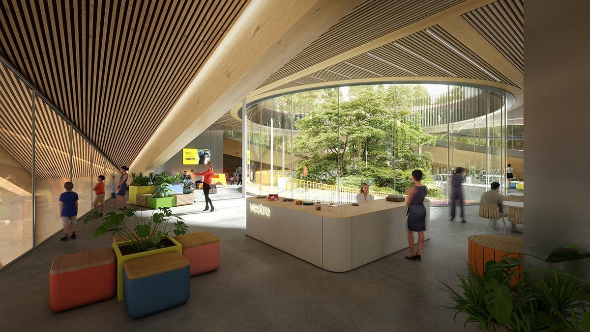 Minden anyagot gondosan, a környezeti hatásaik tanulmányozása után választanak ki, a homlokzat helyi faanyagból és újrahasznosított vasbetonból készül. A „Párizsi Megállapodás-biztos” épület minden tervezési szempontja a megújuló és tiszta energia elvein alapszik, hogy a Vestre környezetbarát módon termelhessen, például a hasonló gyárakhoz képest legalább 50 százalékkal alacsonyabb üvegházhatású gázkibocsátással.