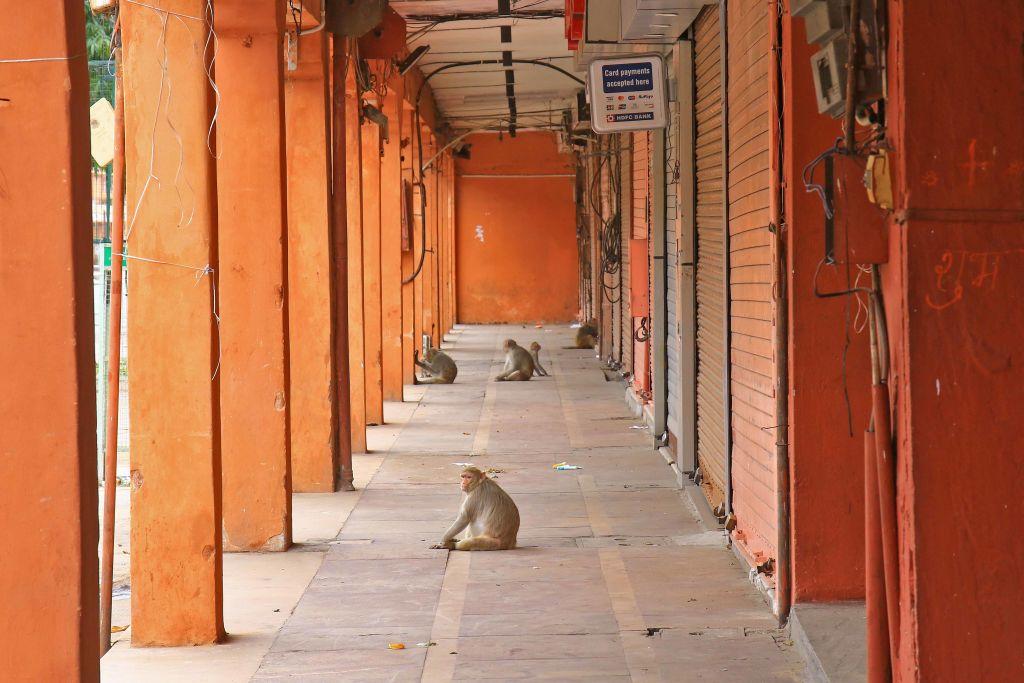 Bár a bazár bezárt, mégsem lett elhagyatott: makákók lakták be az indiai Dzsaipurban / Fotó: Vishal Bhatnagar, NurPhoto, Getty Images