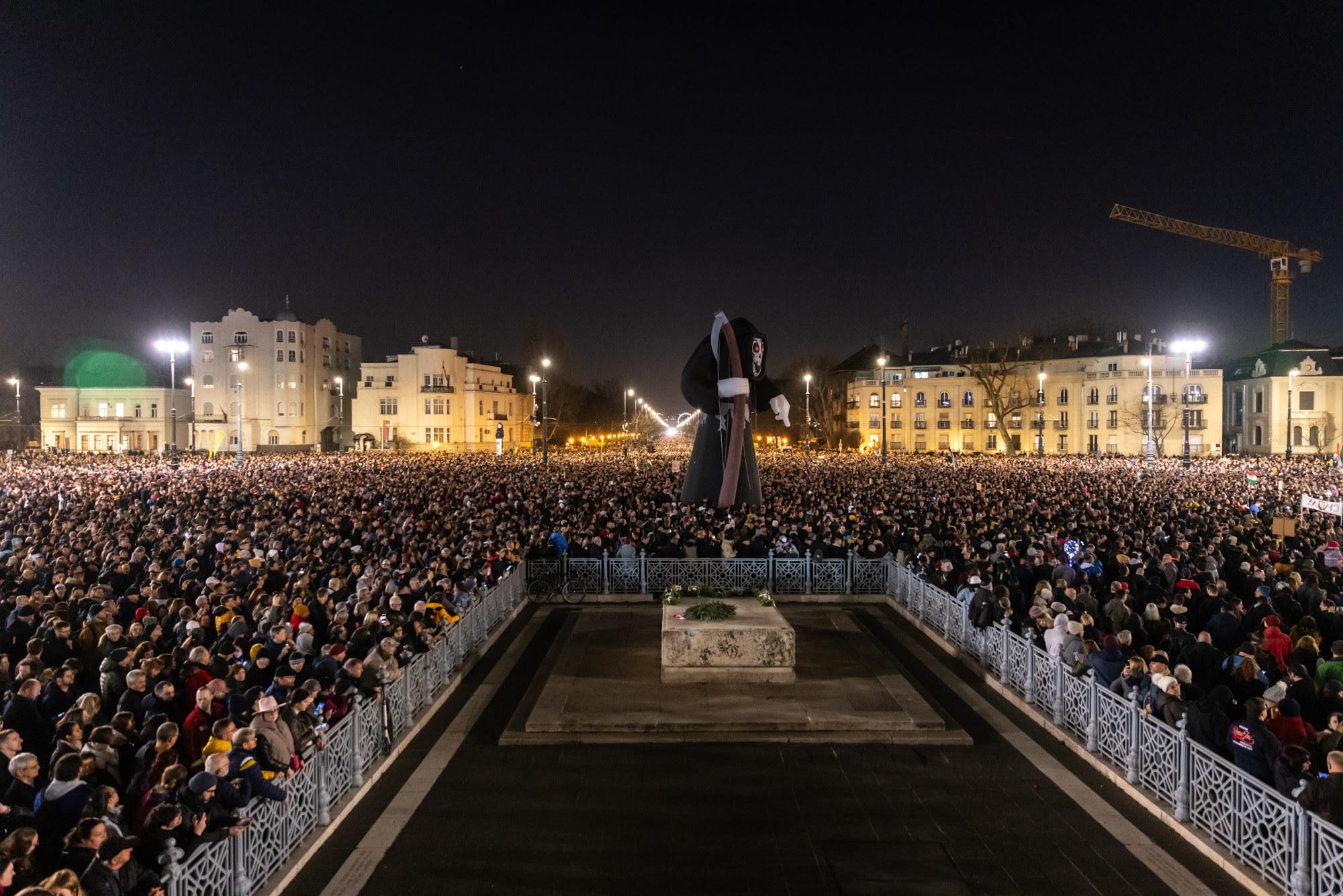Becslések szerint ötvenezren vettek részt február 16-án, pénteken este azon a Hősök terén szervezett tüntetésen, ami a bicskei gyermekotthon volt igazgatóhelyettesének kegyelmi ügye miatt kialakult botrány miatt szerveződött. Az események nyomán az elmúlt napokban lemondott a K. Endrének tavaly kegyelmet adó Novák Katalin köztársasági elnök, visszavonult a közélettől a kegyelmet igazságügyi miniszterként ellenjegyző Varga Judit, és lemondott református lelkész-elnöki tisztségéről Balog Zoltán volt kultuszminiszter, aki szerepet játszott a döntés meghozatalában.