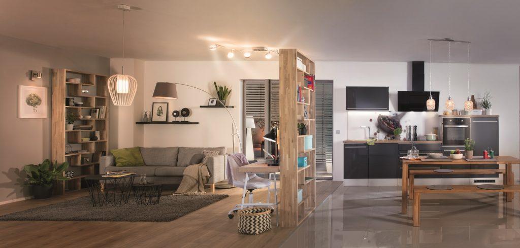 Nappaliba, társalgóba, más közös helyiségbe érdemes mindegyik funkcióhoz világítást kialakítani, illetve kombinálni a különböző területek világításait.