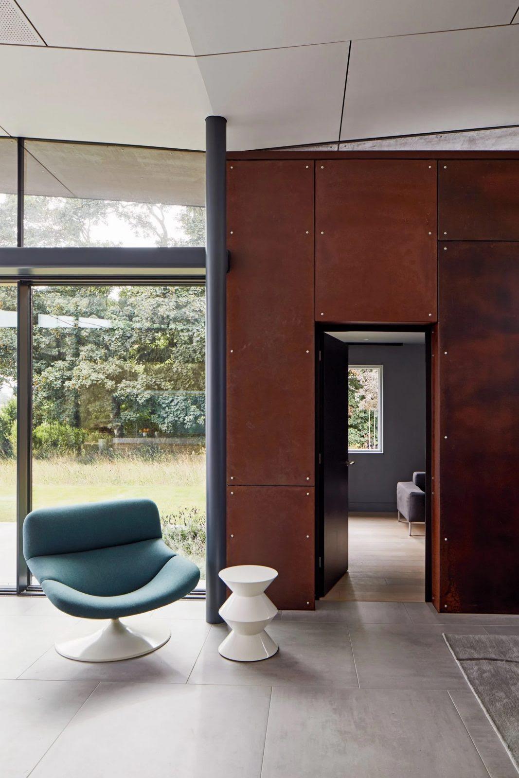 A kőfalburkolatot egy közeli, 15. századi templom inspirálta, a corten acél pedig a kortárs érzést erősíti: együtt pedig elképesztően stílusos és gazdag érzést adnak a háznak.