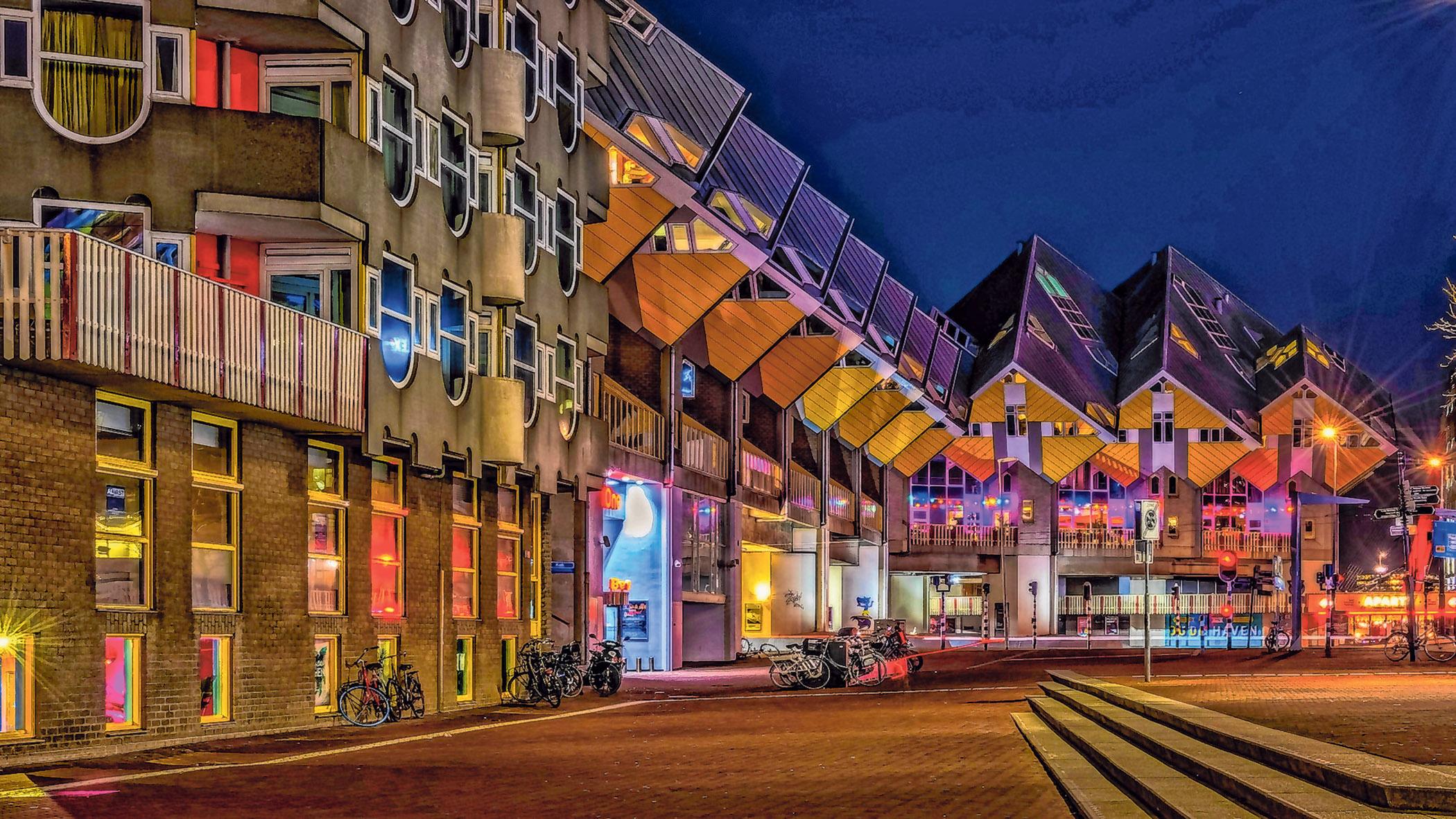 Piet Blom építész előbb az 1970-es években Helmondba, majd az 1980-as években Rotterdamba tervezett különös, az élükön álló dobókockákat idéző épületeket. Blom koncepciója szerint a háromszög tetők absztrakt fákként olvadnak egybe, épületerdőt vagy stilizált fasort alkotva együtt. A 38 lakásból álló rotterdami épületsor afféle város a városban, ami már túl van a 40. évfordulóján. Blom házsora azonnal landmark épület lett – egy okos vállalkozó az egyiket nyomban az átadás után múzeummá alakította –, és ma is a legtöbbet fotózottak közé tartozik a városban, noha világklasszis kortárs épületekben nincs hiány arrafelé.