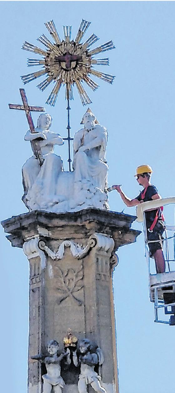 A Tolnai Szentháromság Szobor Felújításáért Alapítványt 2022 szeptemberében azzal a céllal alapították meg, hogy lehetőséget teremtsen a város főterén álló, megkopott szépségű szentháromság szobor felújítására. A copf stílusú homokkőszobrot 1823-ban közadakozásból állították, a 200. évforduló tiszteletére gyűjtést kezdeményeztek a helyiek, hogy megmentsék és visszaállítsák eredeti szépségét. A restaurálás végéhez közeledik, felvételünkön egy elkapott pillanat, „Ég és Föld között".