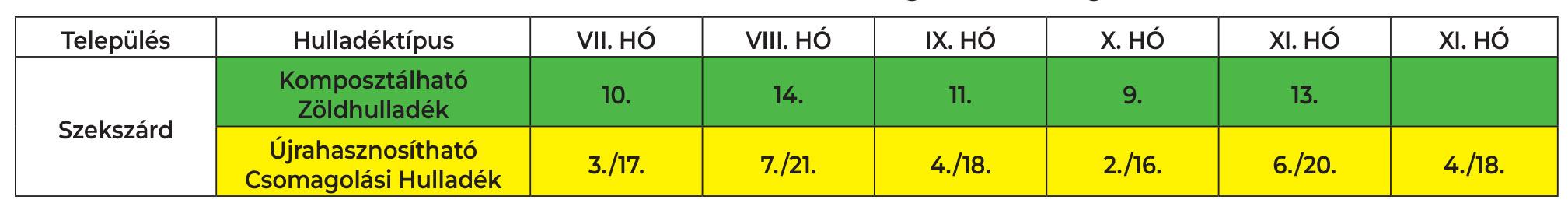 Péntek: Szekszárd családi házas övezet északi fele (Hunyadi utca, Szent-István tér, Béla tér körforgalom vonaltól északra) és heti 1 ürítésre szerződőttek