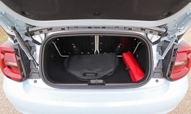 A csomagtartó mindössze 185 literes, ráadásul ebből még a töltőkábel is kiharap magának egy kevés teret. Érdekesség, hogy egy 3+1 ajtós változat is elérhető, melynek jobb oldalán szekrényajtó-szerűen nyitható szét egy kisebb és egy nagyobb ajtó.