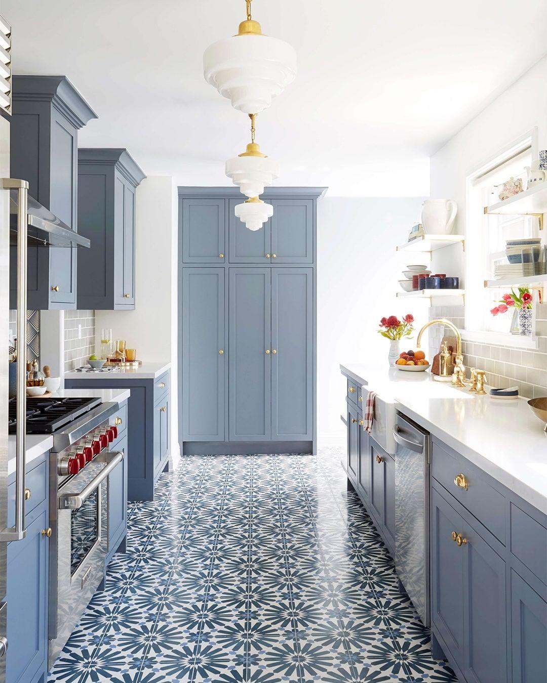 4. Sorminta. A nagy ismétlődő mintás padló, ritmust és vidám hangulatot visz a konyhába. A minta színeihez passzoló konyhaszekrények pedig tökéletes harmóniát teremtenek.