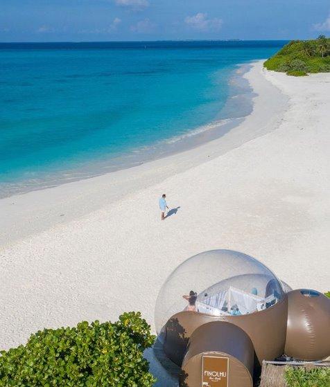 Ki ne szeretne eltölteni egy éjszakát a csillagok alatt egy trópusi tengerparton úgy, hogy ezért semmilyen kényelemről ne kelljen lemondania? A Finolhu resort vendégei számára ez is elérhető a Maldív-szigeteken. Felállították az első „Bubble Beach”-et, egy minden luxussal felszerelt átlátszó, buborék alakú sátrat, amelyből zavartalanul szemlélhetjük a csillagos eget fölöttünk, vagy a mellettünk a végtelenbe nyúló óceánt.