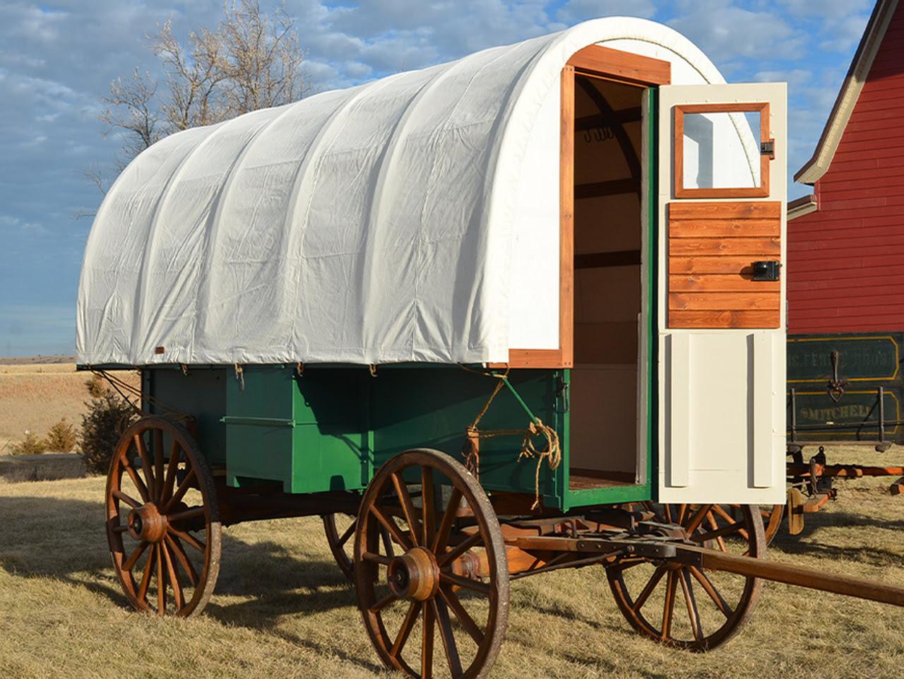 Ezek a praktikus amerikai lakókocsik eredetileg ló-vontatta szálláshelyek voltak és több változatuk kályhával is fel volt szerelve, így a gazdák télen is kint maradhattak a csordával, vagy nyájjal.