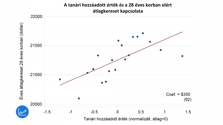 Látszik, hogy a jobb tanárok diákjai felnőttként többet keresnek. A +1 és a 0 hozzáadott értékű tanárokat összehasonlítva: azok a diákok, akiket egy iskolaévben jó tanár tanított, körülbelül évi 350 dollárral keresnek többet, mint azok, akiket abban az iskolaévben átlagos tanár tanított. Ez az egész életpálya során közel 8 ezer dollár, körülbelül 3,4 millió forint különbséget jelent (35 éves karrier, 3 százalékos diszkontráta és 420 forintos árfolyam mellett) minden egyes diáknak. Ha 20 fős osztályokkal számolunk, egy jó tanár évente 68 millió forint jövedelmet termel diákjainak.