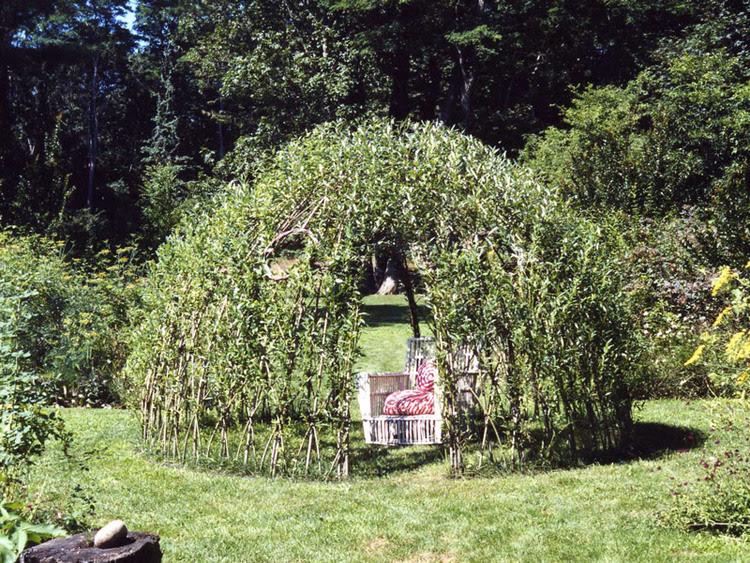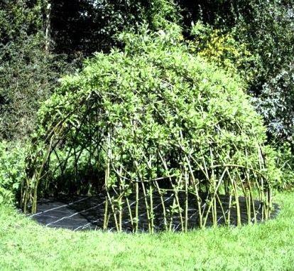 A maradék vesszőket vízszintesen fond be a többi vessző közé, ezek is erősítik a szerkezetet. Mivel ezek nincsenek a földbe ültetve, elhalnak, de így lesz stabil szerkezetű a sátor.