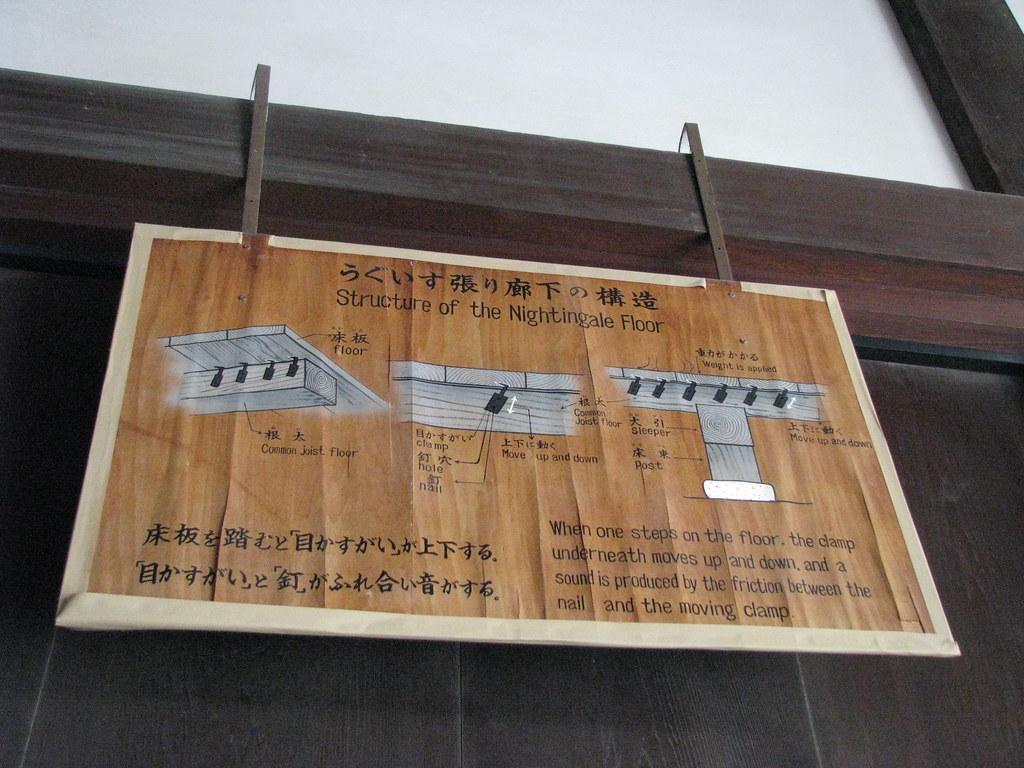 A nyikorgó padló rendkívül bosszantó tud lenni, azonban az ősi Japánban éppen ilyeneket alakítottak ki, nagyon is érthető okokból. A japán társadalomban, különösen az uralkodó, gazdag családokban birtok- és személyvédelmi okok miatt elterjedtek voltak ezek a padlók, amik azonnal riasztották az őrséget illetéktelen behatolás esetén.