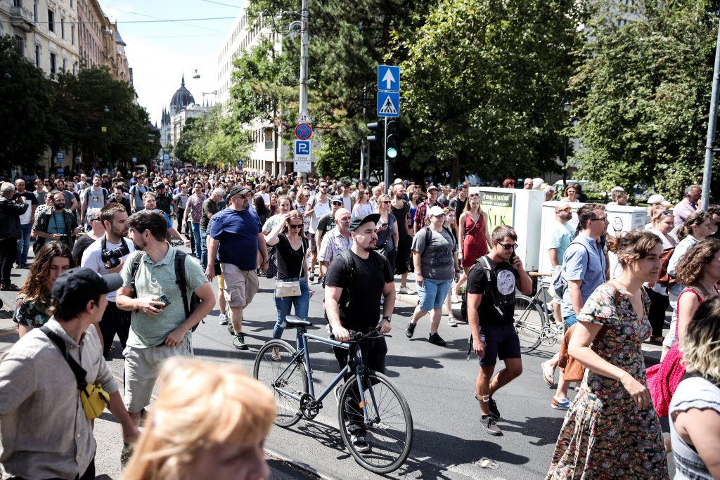 Tizenegy óra előtt nem sokkal a tömeg elindult a Margit hídra. A tüntetők azóta már el is érték a hidat, és mindkét irányban megbénították a forgalmat.