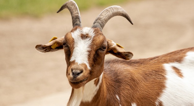 Zuckerberg posztján a két kecske: Max és Bitcoin, utóbbi barna-fehér foltos, pár év körüli, jól táplált, egészséges egyed látható.